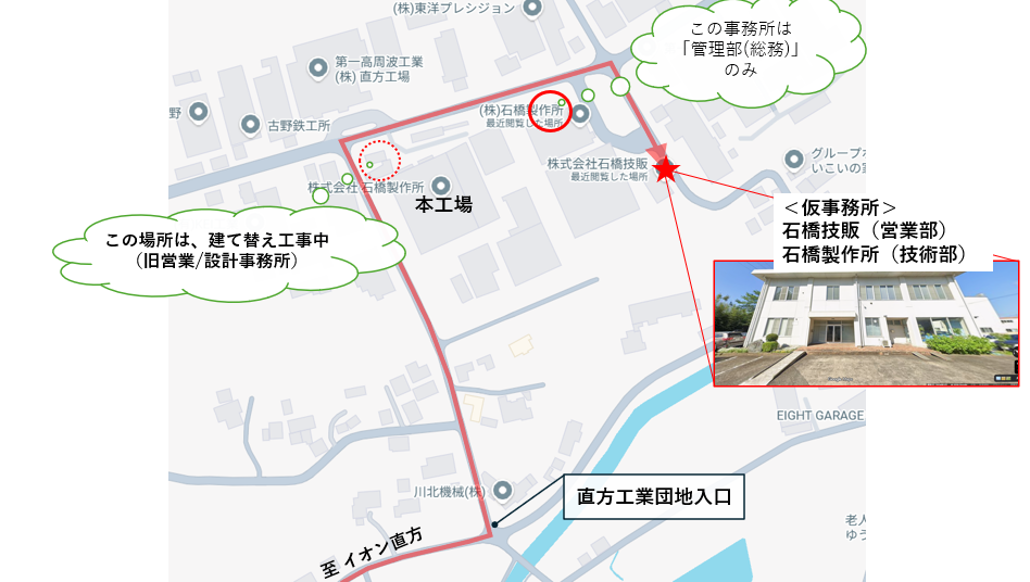 6月30日より、社屋の建て替えに伴い弊社敷地内、下記の仮事務所に移転いたします。